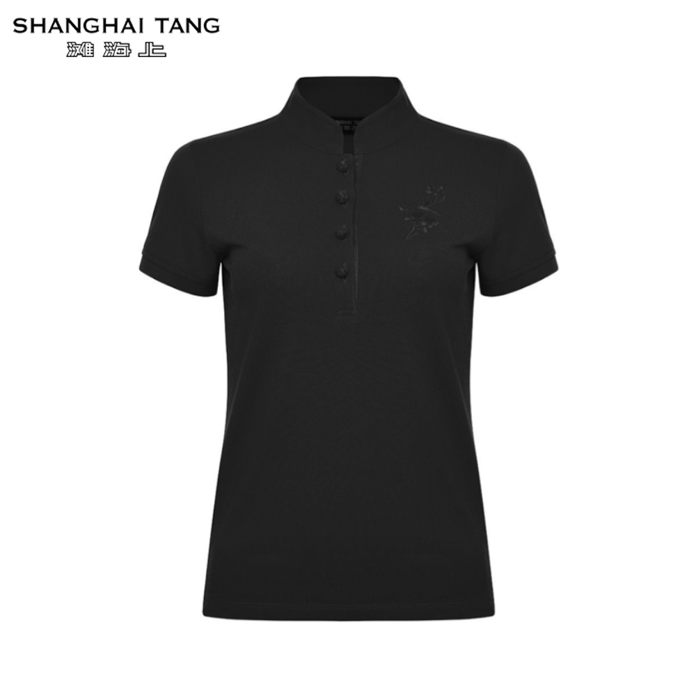 Shanghai Tang's take on the classic polo shirt is a firm fan favourite. Reimagined with our iconic Mandarin collar, this everyday staple has a bit of sporty chic, a dash of modern Chinese elegance and everything in between. This slim-fitted style from the Chinese Garden collection features nature-inspired embroidery of birds in tone-on-tone thread that is discreet but no less stylish.