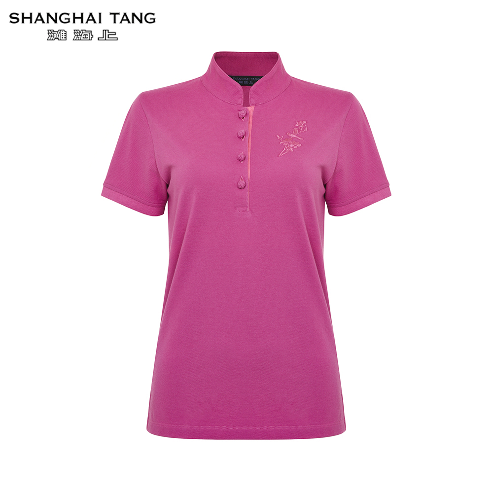 Shanghai Tang Tonal Bird Embroidery Slim Fit Women's Polo Shirt