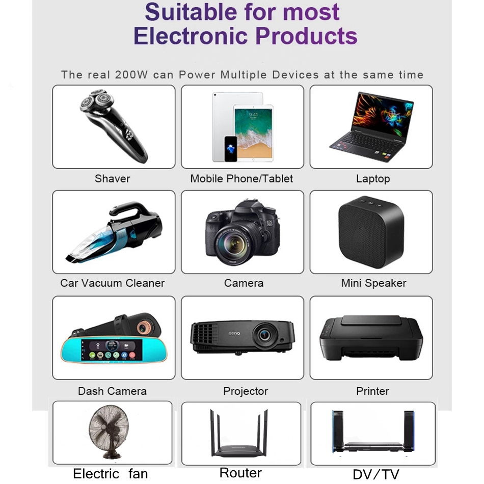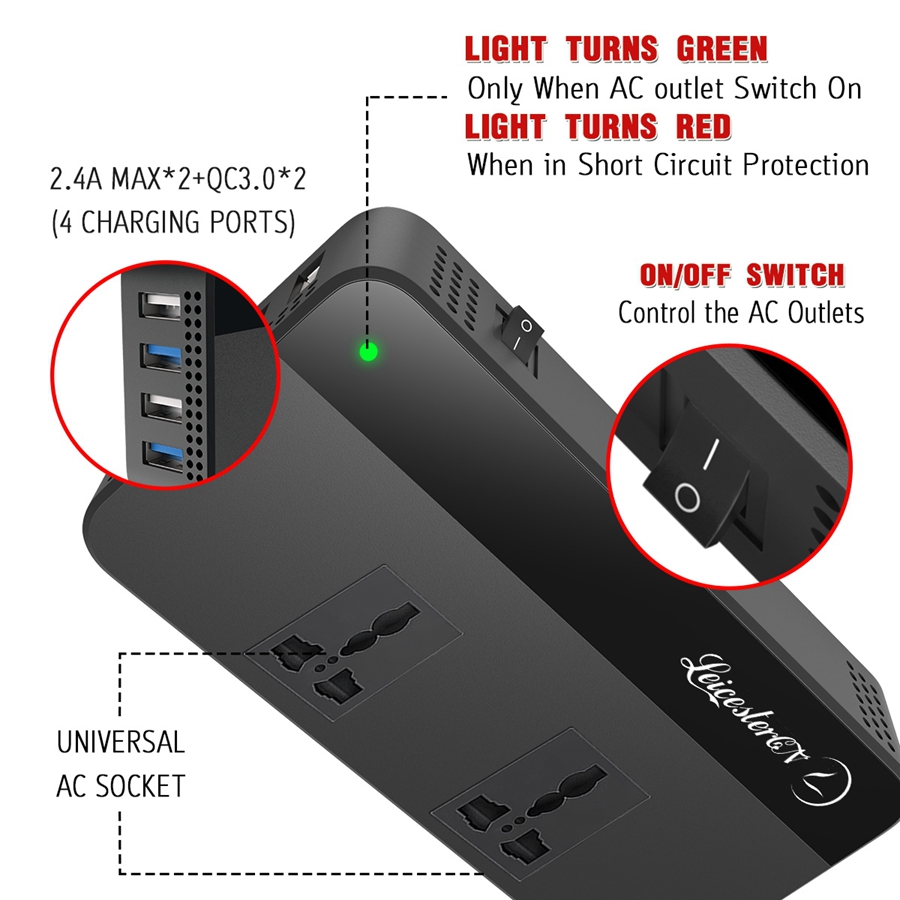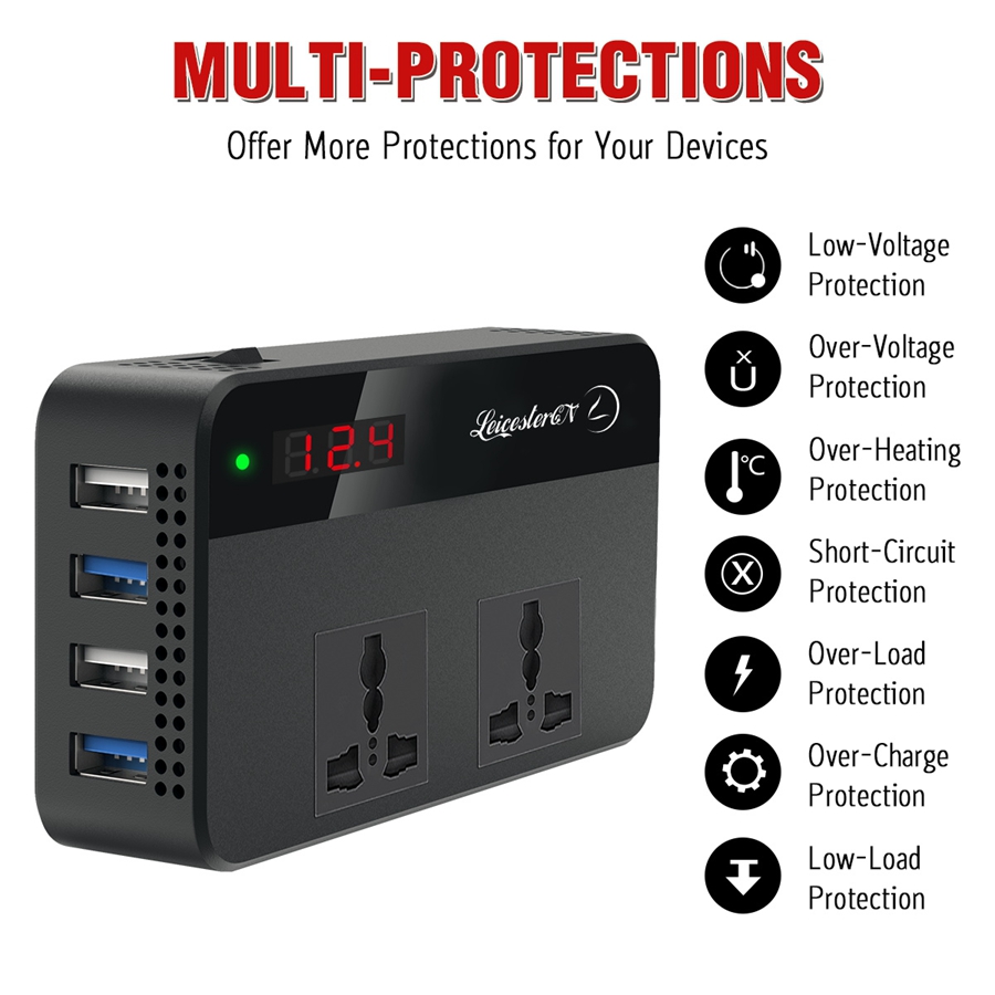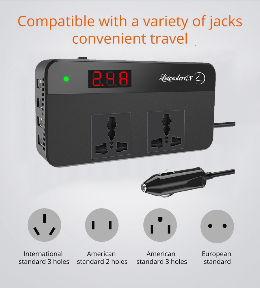 LST 200W Car Power Inverter Converter DC12V to AC220V 2 AC Outlets 4 USB Charger (2.4A MAX*2+QC3.0*2 Fast Charging) Car Accessories Power Converter with Digital Display