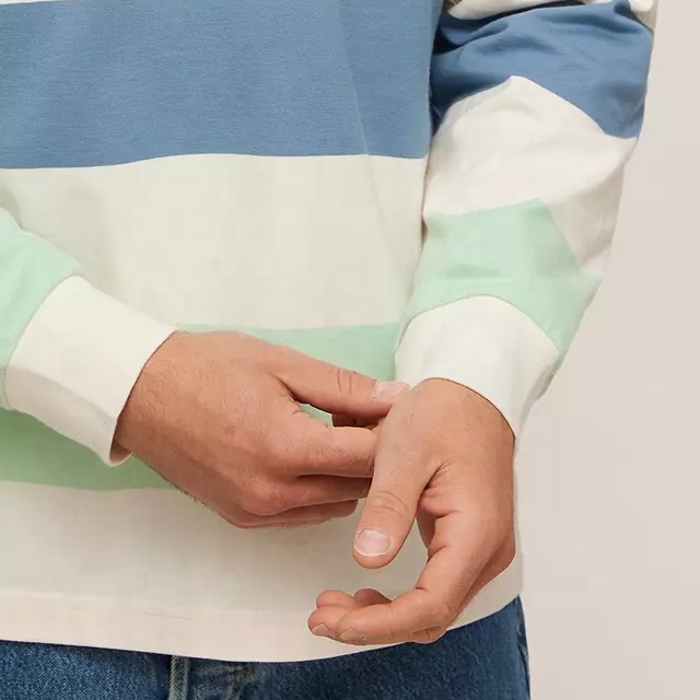Product Name | Men 100% Cotton Striped Long Sleeves Rugby Polo Shirt for Men Custom Embroidered Logo | ||||||
