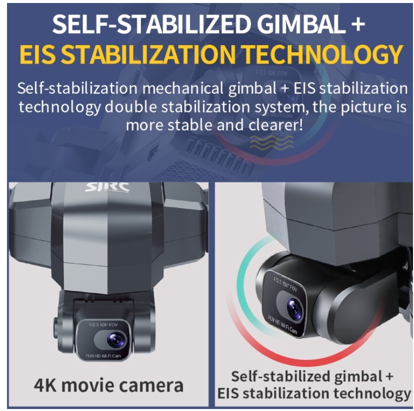 • Camera : 2 -Axis Electronic Stabilization Gimbal Real 4K Camera