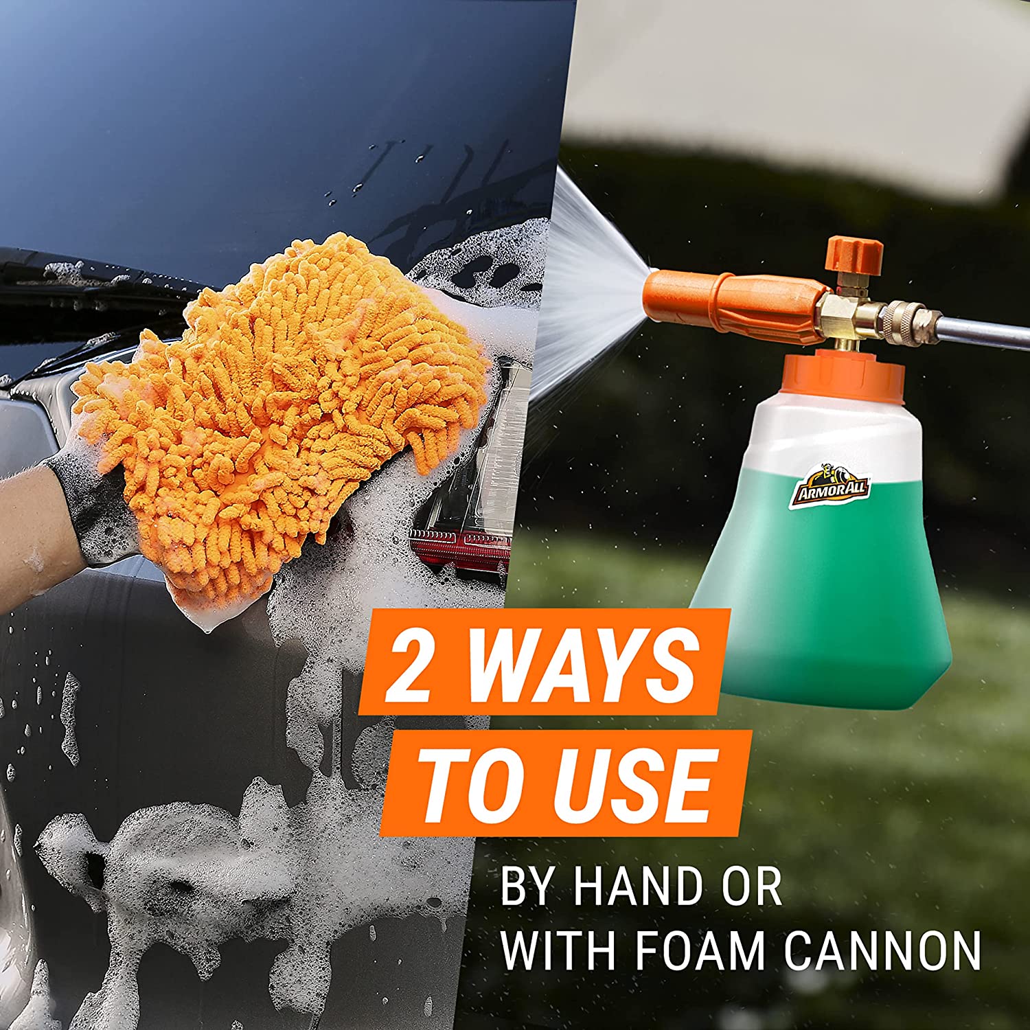 - Car cleaner creates a snow foam effect when used with the Armor All foam cannon