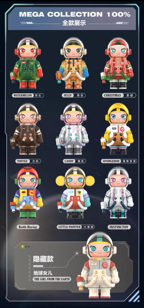 Product details of【High Quality】Mega Collection 100% Space Molly 9 + 1 (Secret Character) Anniversary Blind Box Bubble Mart + 10 Transparent Casing