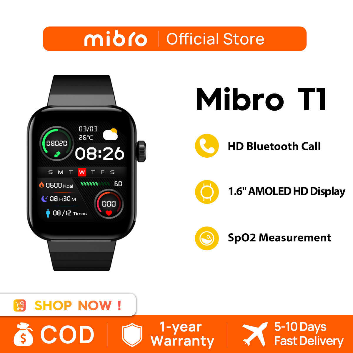 Mibro T1 Smartwatch Bluetooth call 1.6-inch AMOLED Display SPO2 Sensor Global Version