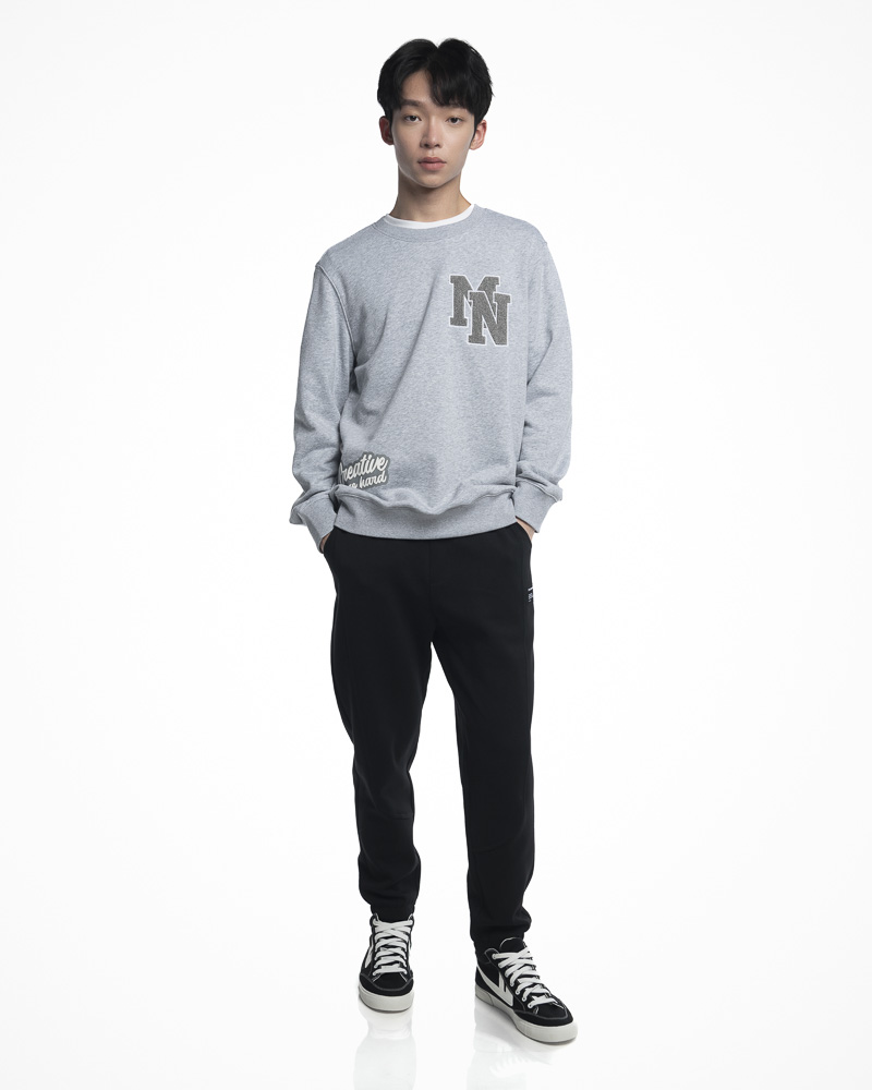 Regular Solid Coloured Long Sleeve Sweatshirt with Round Neck. Comes with MN Fleece Patch and Creative try so hard Slogan at the front. Made of cotton.