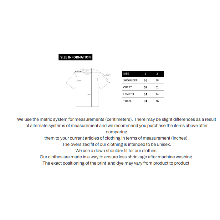 ★We recommend you purchase the items above after comparing them to your current articles of clothing in terms of measurement (inches). Material : Cotton 100% Made in Korea ★ Important information -Considering our international shipping process, We do not accept the Exchange/Return due to any issue including color and size. -Actual product may differ from images shown. -There may be slight differences as a result of alternate systems of measurement. -------------------------------------------------------------------------------------------------------------------------------------------------------------------------------------------------------- ★ Follow us to get latest update of discounts & new products. * Mimifa is located in Korea. * Our products are all directly shipped from Korea. * Shipping (with tracking number) will usually takes 7 to 14 days after shipment. * We accept Pre-order for items Not Listed in our shop. * Wholesale inquiries are always welcome. Return Policy: 1) We accept return(s) if: -you receive a product different from your order; or -you receive a defective product.(* Items with unsatisfactory/incomplete finish due to mass production is not considered defective*) 2) Return Instructions (1) Post a return request within *three* days of receipt. You are required to attach the photos of the received product(s) and include the item code, the order number. (2) Items returned must be in their original condition,Please note that even the defective/incorrect item(s) must be returned with all of the tags and labels intact. The item(s) must be sent in their original packaging and unworn. 3) We do not accept return(s) if: -you are returning the items just because you changed your mind (on size, color, etc.) -you are returning shoes, bags, or any other accessories*** -the products are damaged due to your mishandling * Please contact us if you have any problems, We will help you to resolve the problems as soon as possible. Thank you !