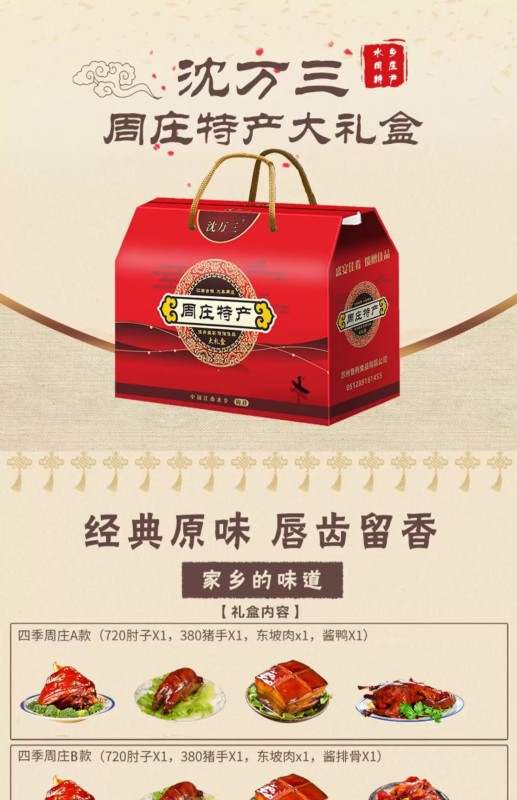 Gift box Shen Wansan Zhouzhuang specialty pork elbow Dongpo pork ribs meat cooked food