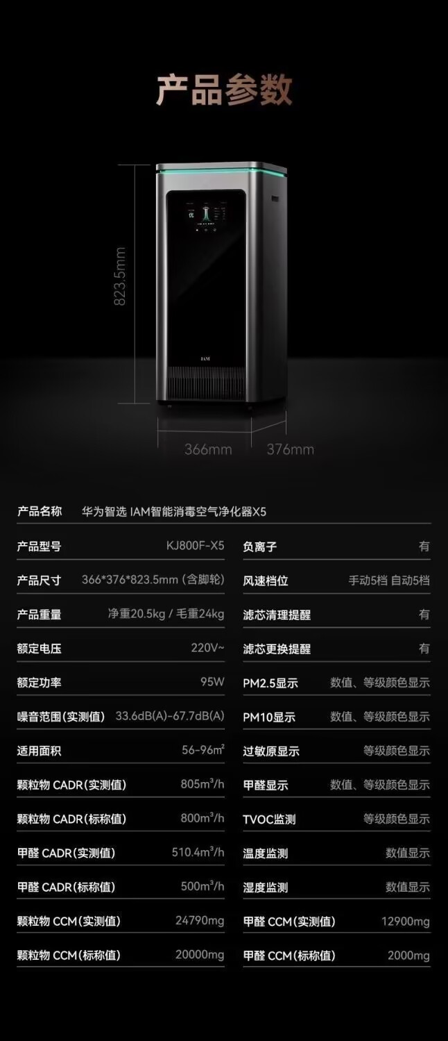 Huawei Intelligent IAM Intelligent Disinfecting Air Purifier X5 for Removing Formaldehyde Decomposition Bacteria Household Negative Ion Machine