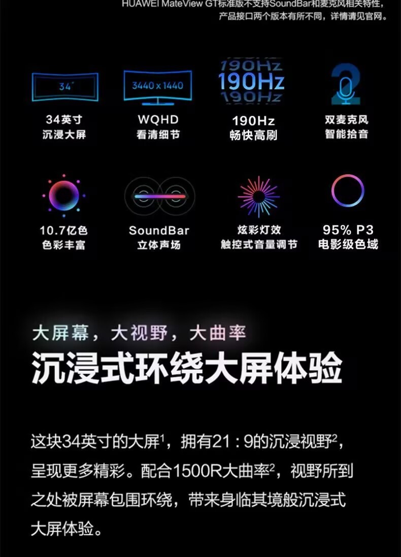 HUAWEI)MateViewGT34-inch curved display with fish screen computer LCD eye protection HD