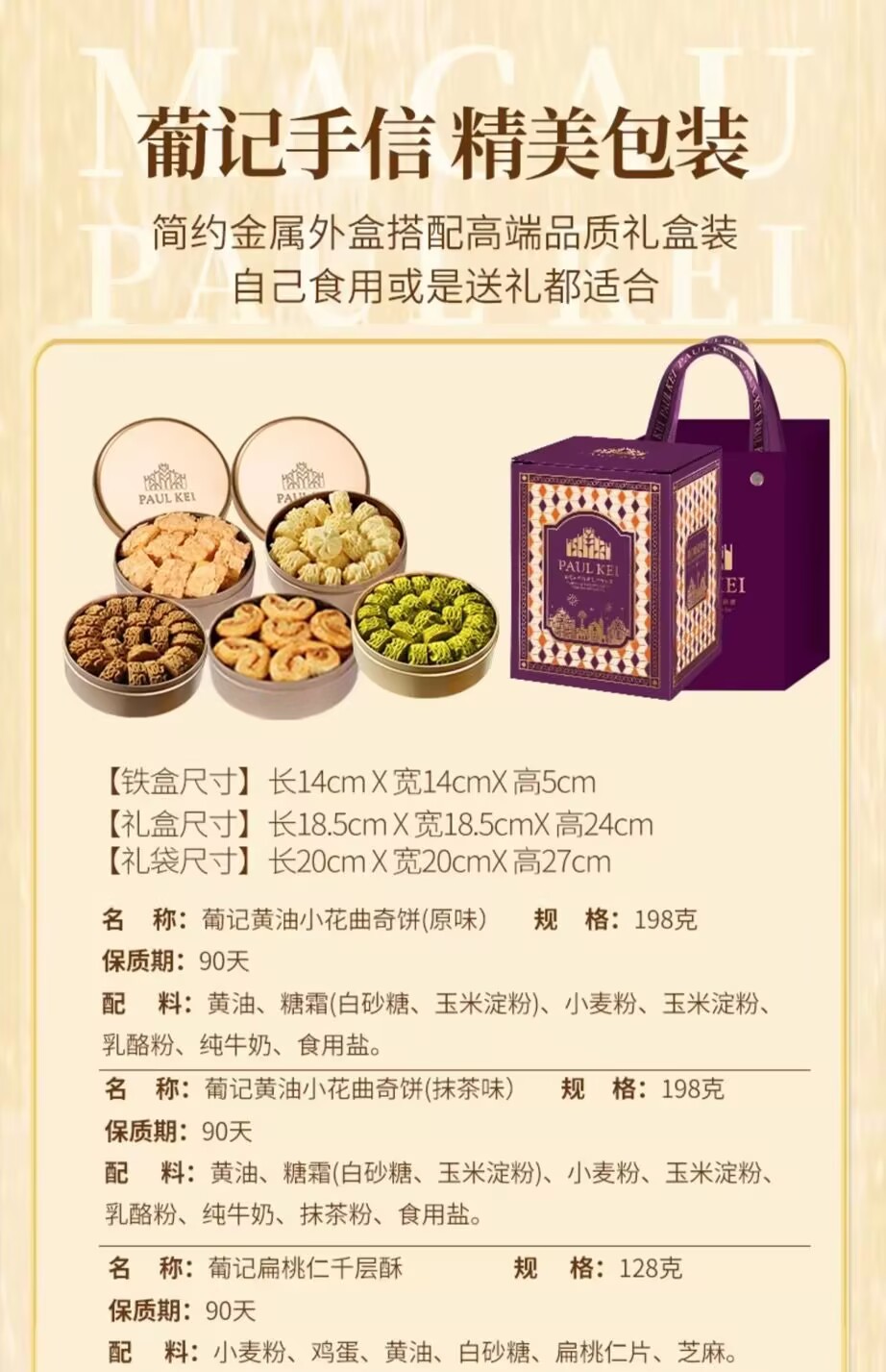 Macao Portuguese small gold box handwritten letter *3 boxes of Melaleuca Butterfly Butter Little Flower Cookies Zero Food Gift Box