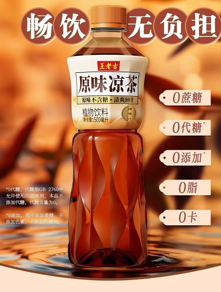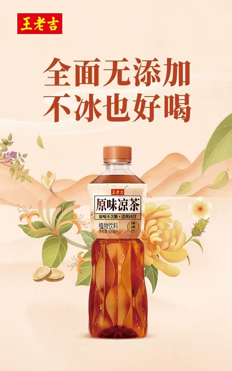 Wang Lao Ji's sugar-free original herbal tea plant beverage 500ml*15 bottles full case