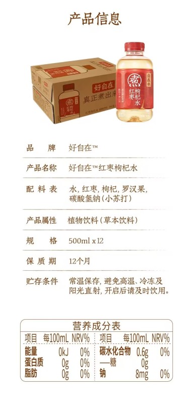 Yuanqi Forest is so free from Yuanqi Free Water Jujube Lycium barbarum water 0 sugar 0 fat 500ml*12 bottles of drinks